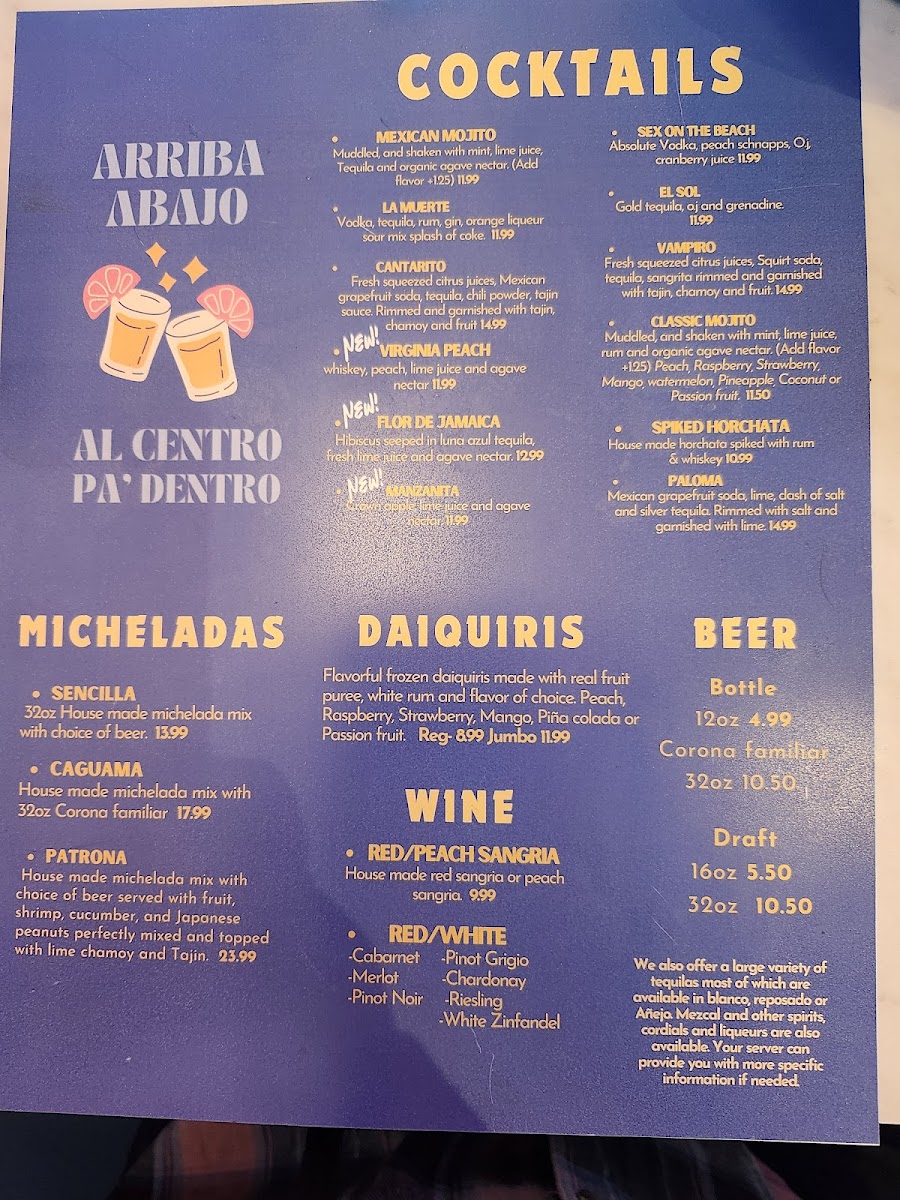 “ This restaurant has the most attentive staff, colorful decorations, and the best Mexican food! I had the birria bombs, a mango daiquiri and churros with ice cream for dessert! The vibes were awesome. Definitely recommend coming here. You can tell the cooks make these meals with love and rich flavor. ”
